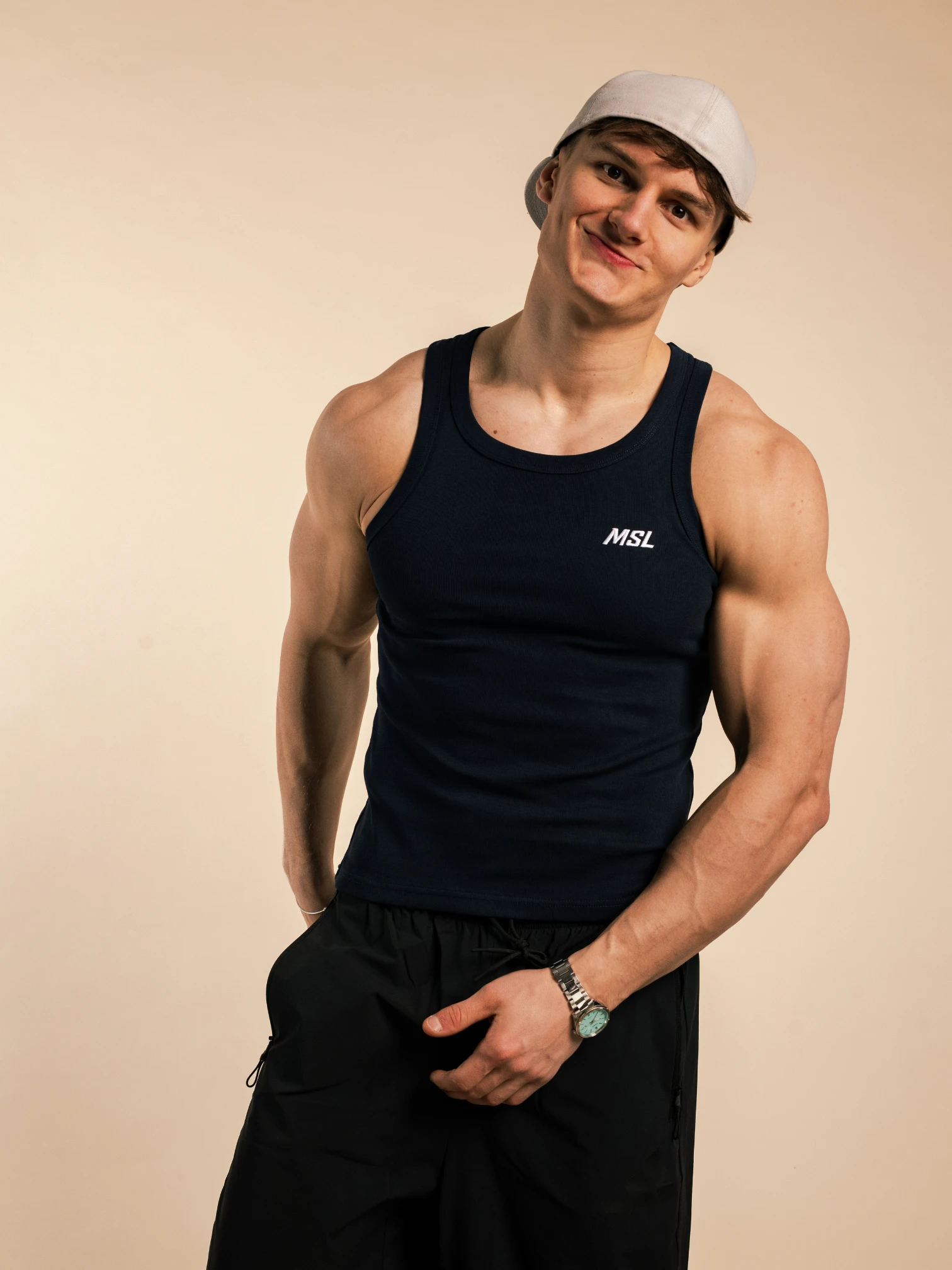 Minimalistyczny design uzupełnia haftowane logo MSL na klatce piersiowej, które nadaje koszulkom subtelny, sportowy charakter. Kolor Obsidian Navy – głęboki, elegancki granat – sprawia, że tank topy doskonale pasują do większości sportowych stylizacji.