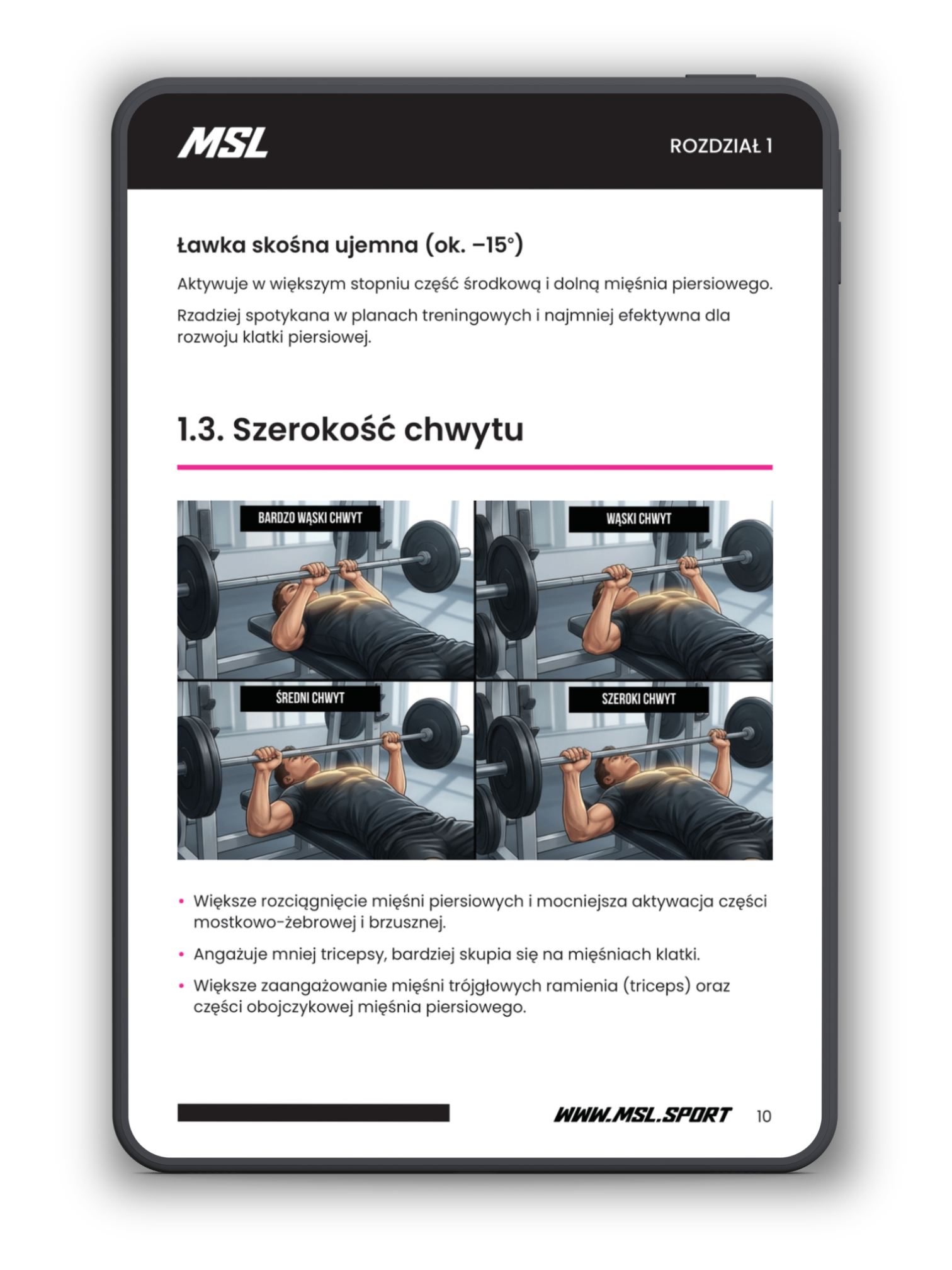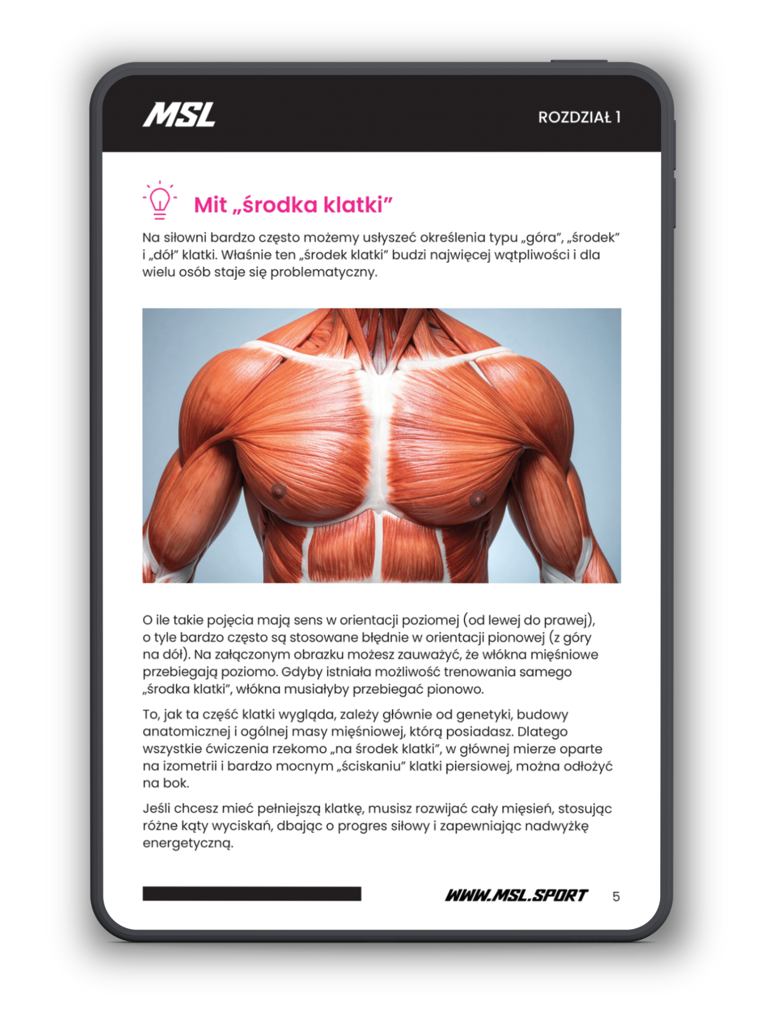 ✔ Kompletną analizę anatomii i funkcji mięśni klatki piersiowej — dowiesz się, jak trenować górę, środek i dół klatki oraz jak dobierać kąty ławki, chwyty i ustawienie ciała dla maksymalnego efektu