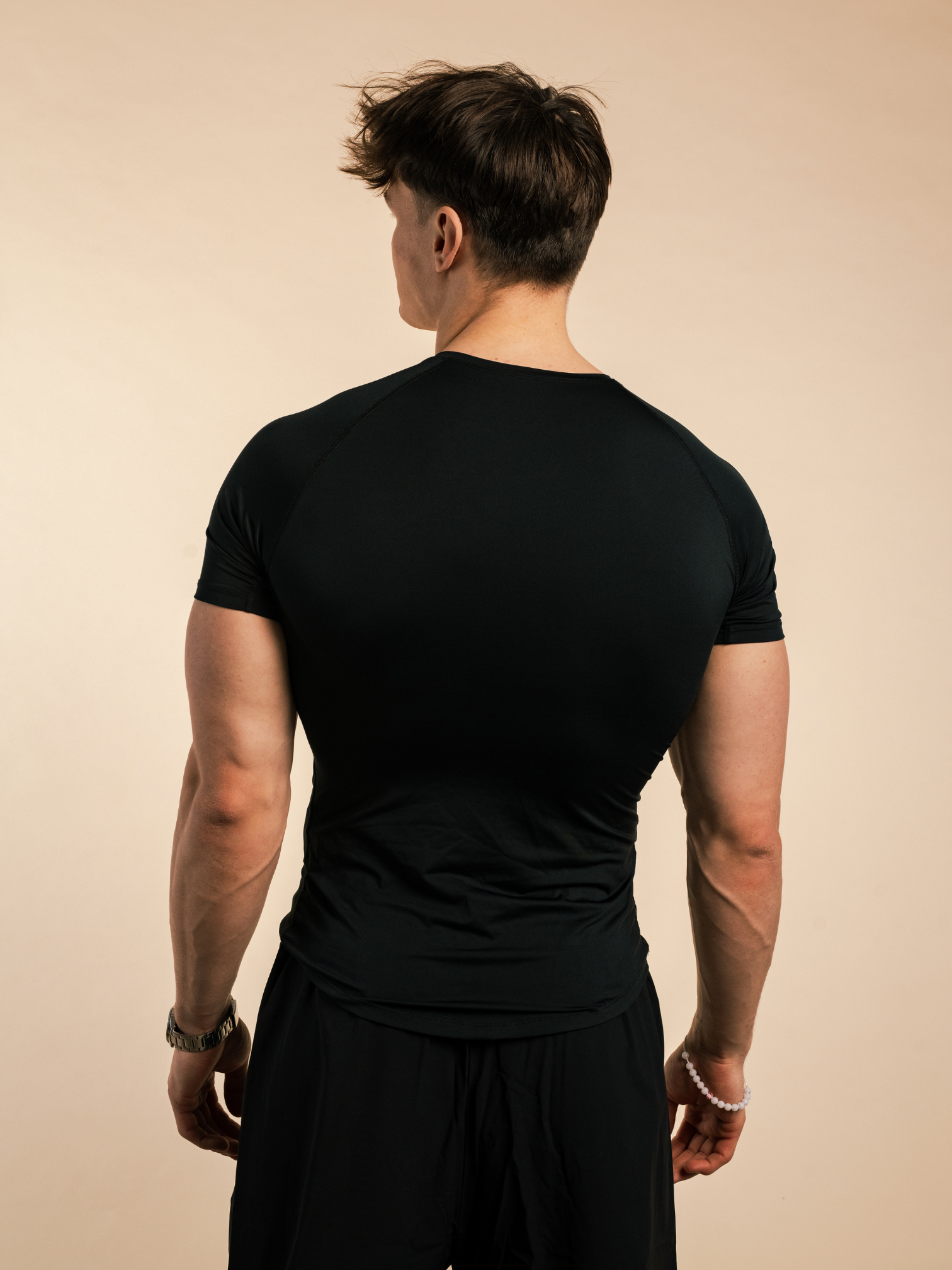 T-shirt kompresyjny "Black Onyx" to techniczna koszulka kompresyjna zaprojektowana, by podkreślać sylwetkę, zapewniać pełną swobodę ruchu i maksymalny komfort podczas każdego treningu. Lekki, wytrzymały materiał 190 g/m² z technologią 4-way stretch, szybkie schnięcie i skuteczne odprowadzanie wilgoci sprawiają, że t-shirt idealnie sprawdzi się w każdym sporcie.